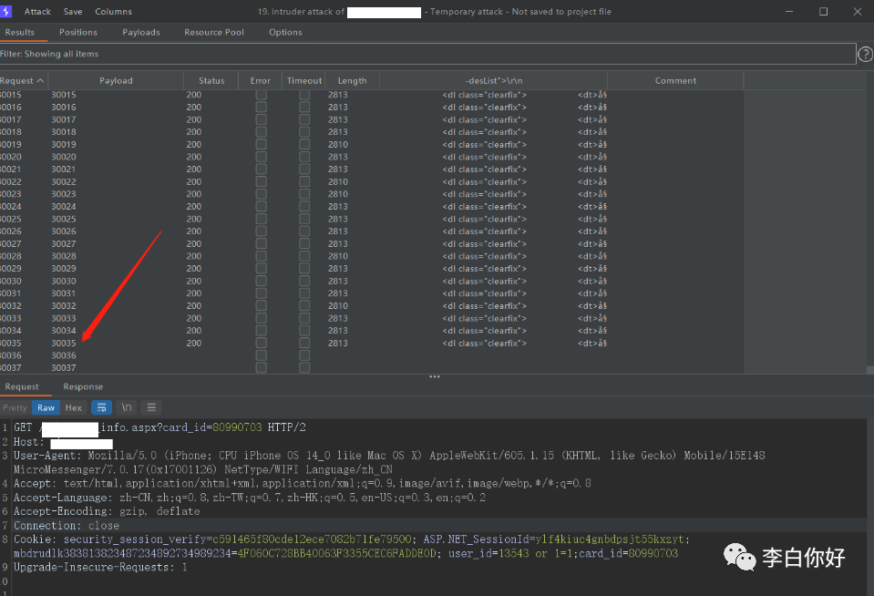 返回的数据包如下图,但是利用burp跑的话,怎样将数据提取出来呢,从而证明自己的数据量