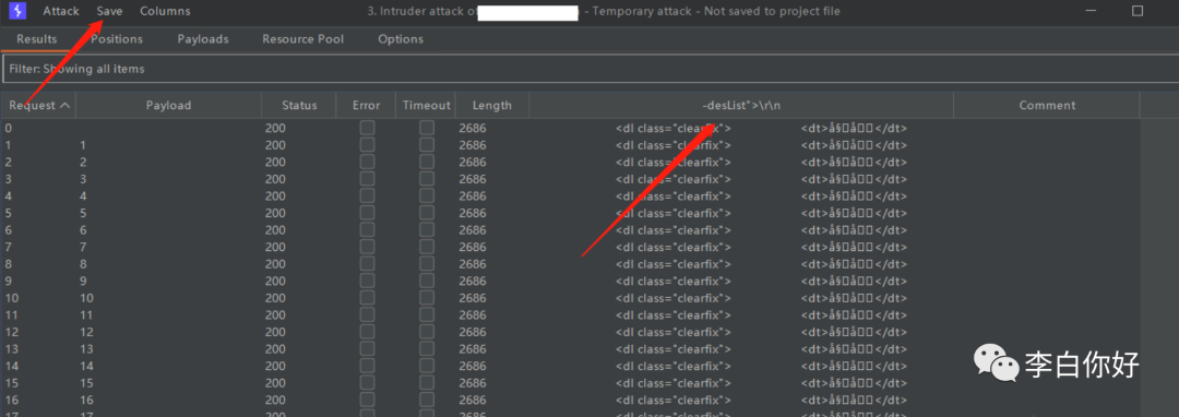 然后开始爆破,可以看到敏感信息部分被成功提取出来了,但是显示的时候有点乱码,不过不影响,保存之后不会乱码