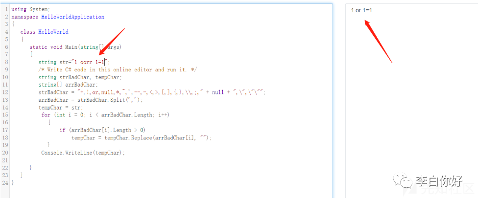 相信有师傅已经看出了此过滤函数的问题所在,这里明显存在双写绕过,并且过滤的关键字并不齐全。如果存在数字型的注入,完全可以使用双写来进行绕过。