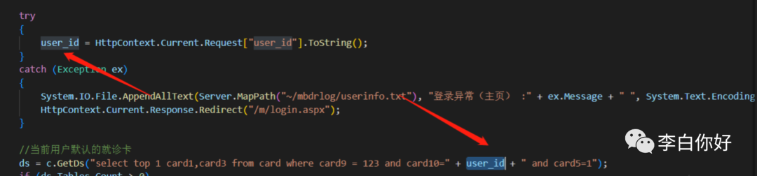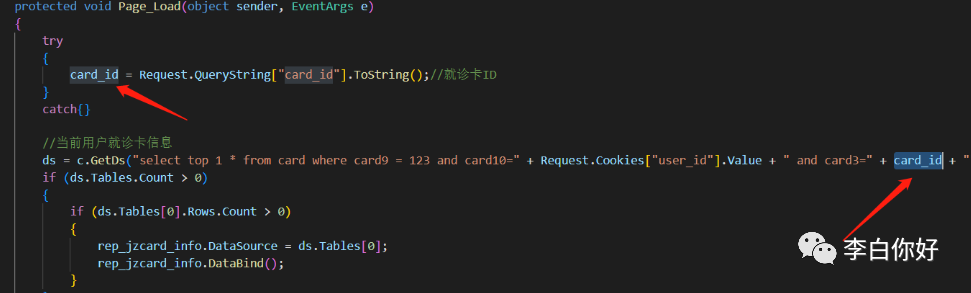 代码段跟SQL注入点一相同,只不过此时是GET参数card_id存在SQL注入