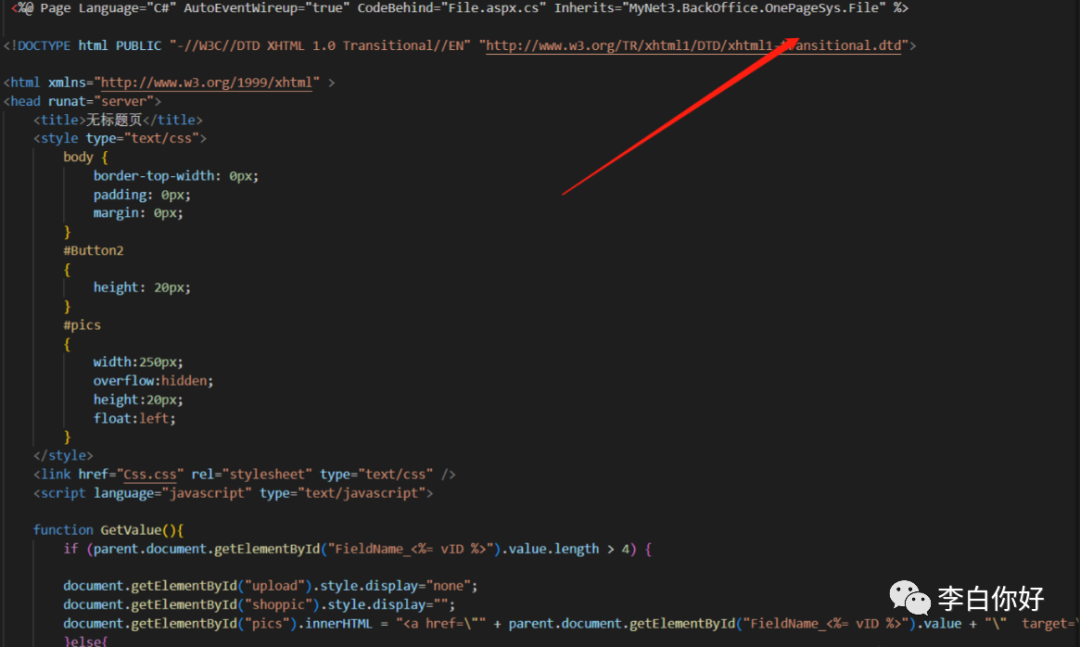 除了这里的编辑器处可以上传外,可以看一下例如upload.aspx,file.aspx这种命名的aspx文件。在这里file.aspx里面全是html代码,除了一开始引用这个dll文件的代码