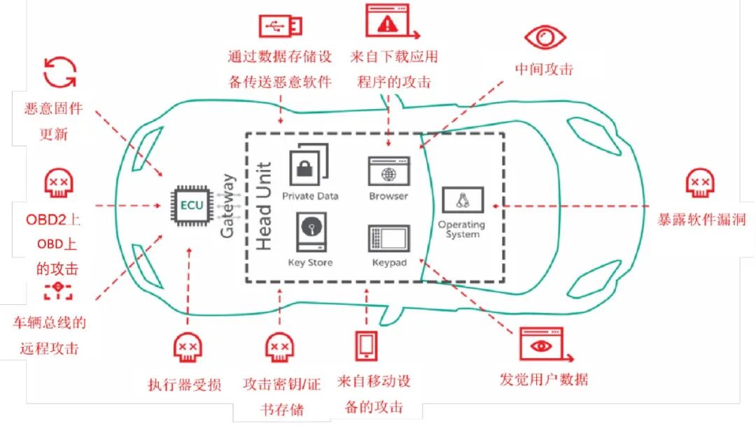 今天给大家分享一下 AP & CP AUTOSAR中的信息安全现在车可能相比于十年之前,它有更多的联网的功能,越来越像一个手机。有一些隐私的信息也会存放在车上,车辆已经越来越多的跟自己的一些个人相关的信息有关。自动驾驶功能引入以后,因为它可以依靠一些软件来实现自动驾驶。信息安全,它的特点是:可能会去篡改软件的内容或者是让一些功能失效。对于Safety来讲,它有一部分也关系到信息安全,所以从个人隐私、信息和车辆的使用安全来讲,它都离不开信息安全,有非常强相关的关系。在车里面,有哪些场景会和信息安全有关?以往我们用的多的是诊断,它是一个接入车上电子ECU的一个通道,是诊断入口。车连上互联网后。多了很多应用场景,如下图所示。像远程收集汽车的状态,有些信息还可以和4S店系统做一个同步,得到维护和服务的信息;像车队管理,物流公司整车都有架构系统,还有V2X跟路边单元通信和云端的一些V2S的服务;还有自动驾驶保险,比如说保险以后跟车上面是不是有一个非常健全的信息安全系统,有很大关联;比如说可以根据车辆倾向性等级,制定不同保险的策略;还有OTA可以远程去更新车上的一些固件;还有远程驾驶员协助;这些都是可能和信息安全可能会有些关系的应用场景。在这种场景下,有哪些手段可能会成为车辆信息安全被攻击的途径呢?从下图里面可以看到,如Head Unit或者一个导航系统,它是最主要的一些被攻击者去攻击的一个途径,因为它上面有存储设备的接入,又有网络互联的功能。OTA也是通过下载。所以它上面可以有很多手段黑客可以攻击。有些手段在互联网时代是比较多见的。比如通过以太网的一些协议来攻击和侵入我们的系统。上面的系统也是Linux或者安卓的,这些也是在消费电子领域经常使用的,有很多手段和恶意的方式来攻击我们的系统。包括去获取系统上的一些用户数据什么的。除了这个,还有我们车上的ECU,ECU跟安全用车有非常大的关系。ECU上面的固件也是非常重要的,信息安全的一个问题点就是:它有可能通过一些方式去更新ECU的一些固件,达到破坏功能,会获取用户数据的一些目的。