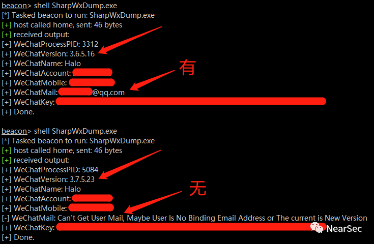 3. 如果用户登录了WX,直接执行即可获取:进程ID/当前版本/昵称/账号/手机号码/邮箱/数据库密钥,目前所有正式版本都可以(能用就行)