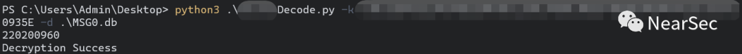 python3 .\Decode.py -k 数据库密钥 -d .\MSG0.db解密成功