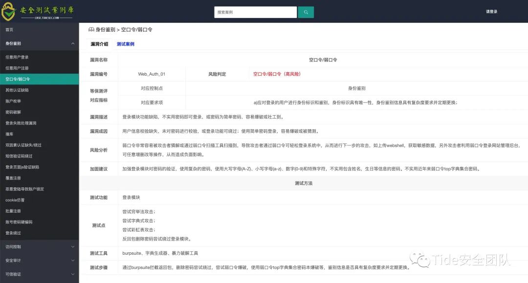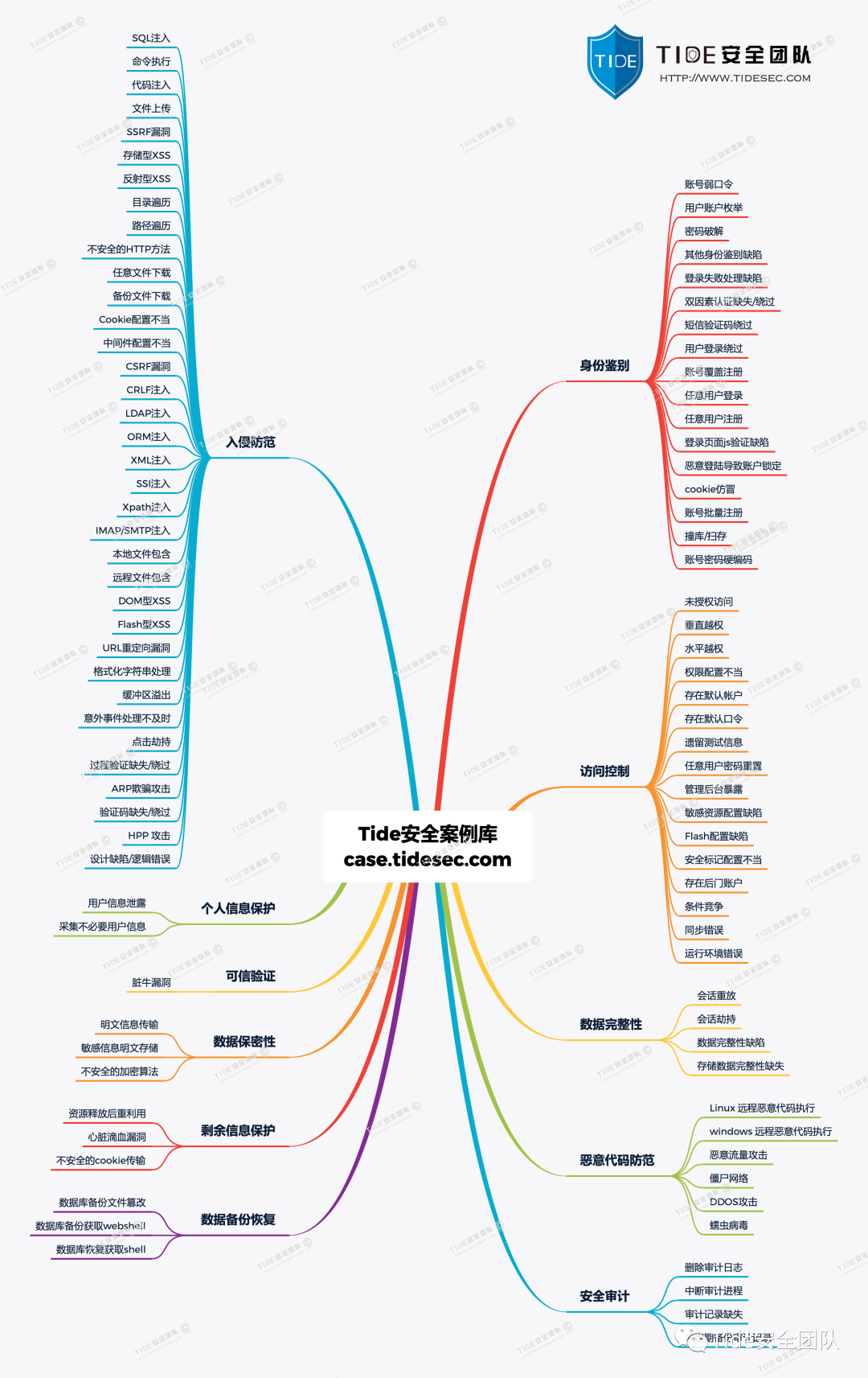 声明:本测试案例库是由山东新潮Tide安全团队根据规范和经验整理而来,并非安全测试的规范或标准,仅供大家测试参考之用。