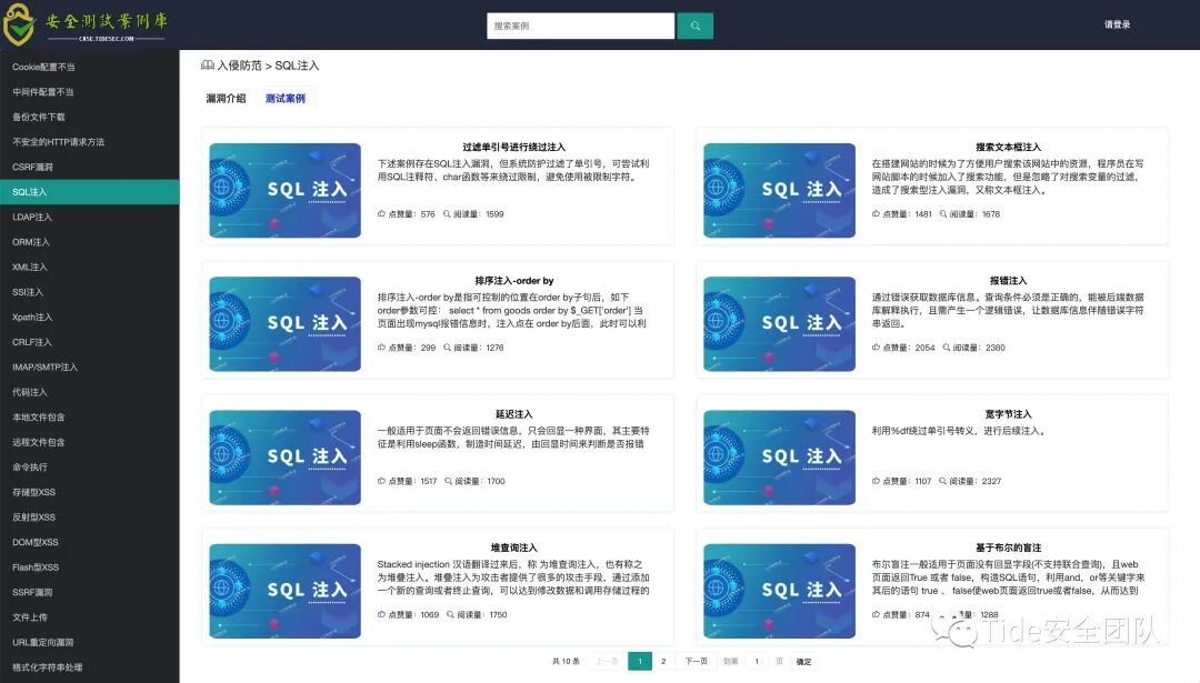 每个漏洞项都包含了大量的真实测试案例,供测试人员进行参考学习。