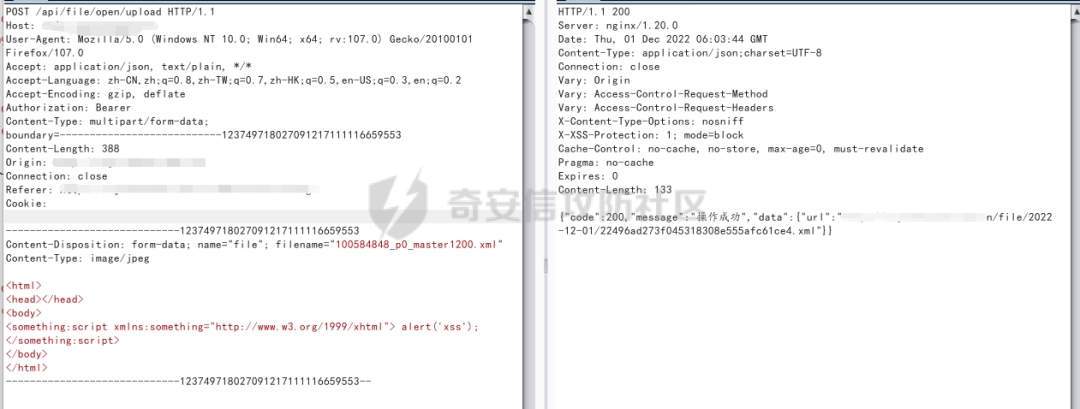 这一处应该存在黑名单过滤,脚本类文件无法上传,这里包括了xml,html,js,css文件均无法上传,该系统应该存在waf,上传脚本文件直接400错误,就连弹窗快乐一下都不行了?