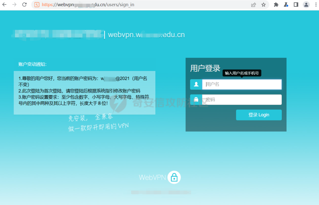 测试后,找到近百的账号,将账号放到刚刚的webvpn中测试,密码就用网页显示的。