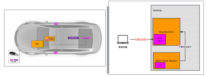 上述都偏向于远程无线的攻击手法,下面再给大家介绍一下,如何通过物理的方式去攻击。比如说无钥匙启动场景。