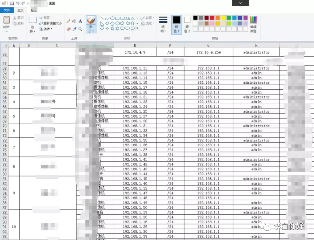 4、在桌面发现了一个 excel 文档,里面是交换机的 IP、密码,还发现了一张图,里面是摄像头的 IP 和密码,直接起飞