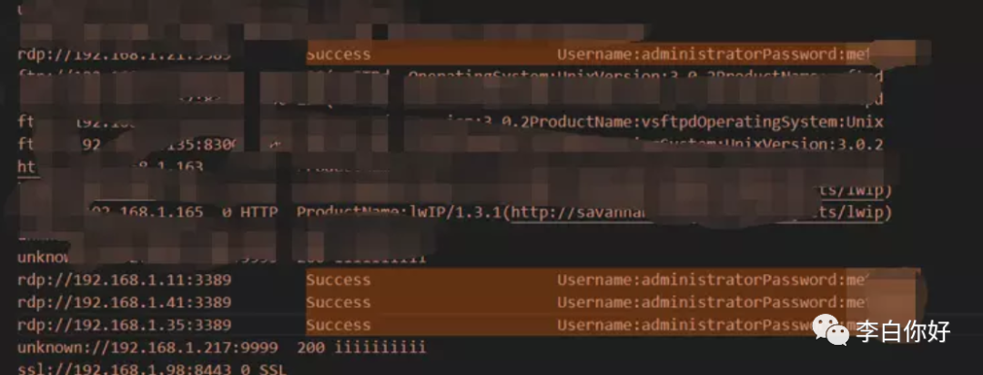 9、因为 192 段的物联网机器都是 Windows 2008,直接抓密码,然后用 kscan 爆破,发现了一些 RDP 弱口令,截图只是部分