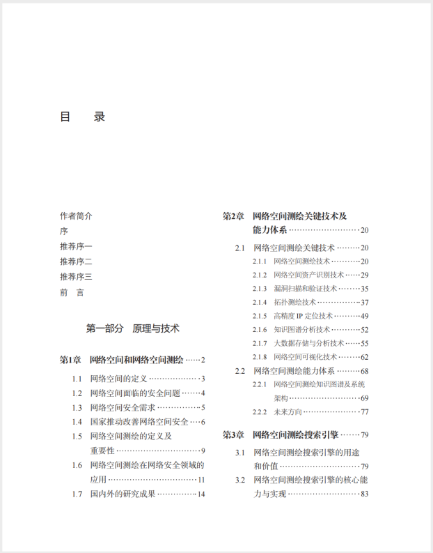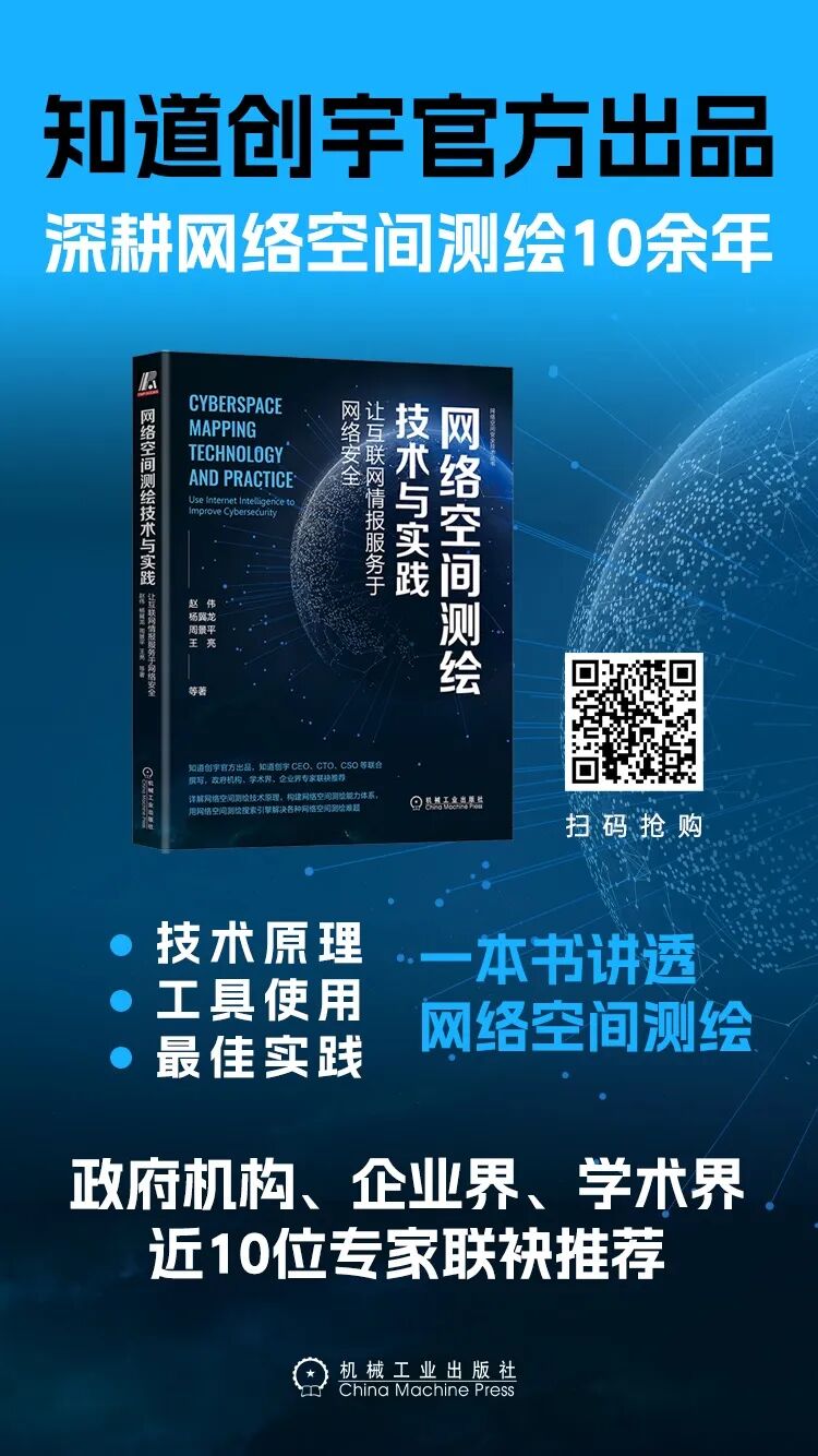 知道创宇出版此书希望能够让更多对网络空间测绘感兴趣的人进入这个领域,为网络安全领域的相关工作添砖加瓦,为保障国家网络安全做出贡献。