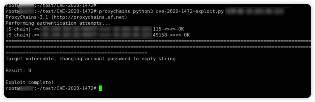 这个时候就陷入了瓶颈 ... 后续通过发现 BBB 域的 DC 存在 CVE-2020-1472 漏洞:(具体利用流程我在知识星球 渗透攻击红队 写了,有需要的兄弟自取)