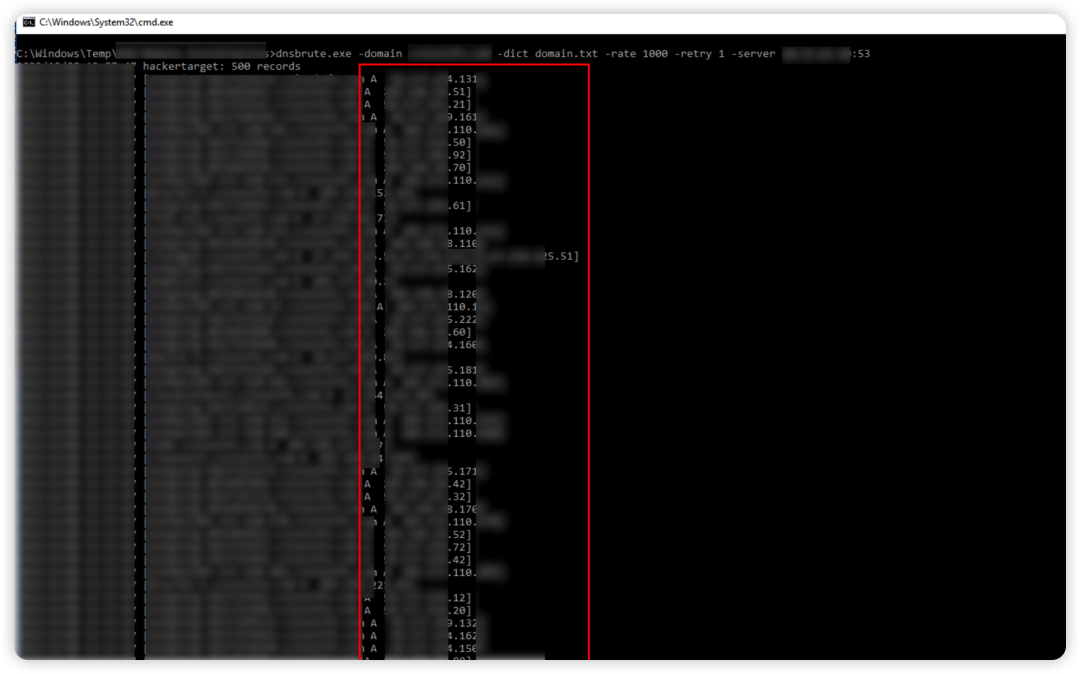 dnsbrute.exe -domain aaa.com -dict domain.txt -rate 1000 -retry 1 -server xxx.xxx.66.xxx:53