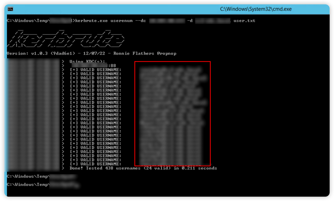 kerbrute.exe userenum --dc xxx.xxx.30.xxx -d BBB.com user.txt