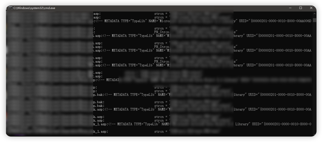 findstr /c:"username=" /c:"password=" /c:"uid=" /c:"pwd=" /si *.ini *.inf *.txt *.cgi *.conf *.asp *.php *.jsp *.aspx *.cgi *.xml *.log *.new *.bak