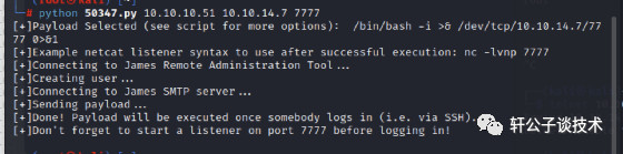 打开脚本,发现4555端口,默认用户名密码都是root,显示链接成功,但是并未反弹shell