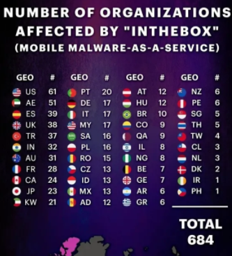 近日,研究人员在暗网发现一个新的移动端恶意软件市场 INTHEBOX,该市场主要面向恶意软件开发商和运营商,提供出售的独特工具和所谓的 WEB 注入漏洞。至少从 2020 年 5 月开始,TOR 网络中的网络犯罪分子就可以使用该市场,以此利用攻击 43 个国家或地区的 300 多家金融机构、支付系统、社交媒体和在线零售商,用于网上银行盗窃和金融诈骗。但还不止于此,这些恶意工具还收集其他敏感信息,如信用卡信息、地址详细信息、电话和其他 PII。