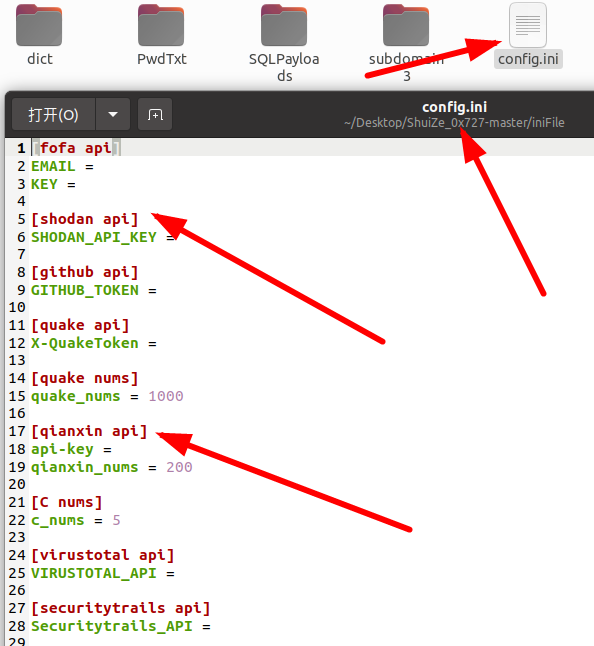 2、修改配置文件,把能填写的api都填写到上面,平台越多,收集的信息越多
