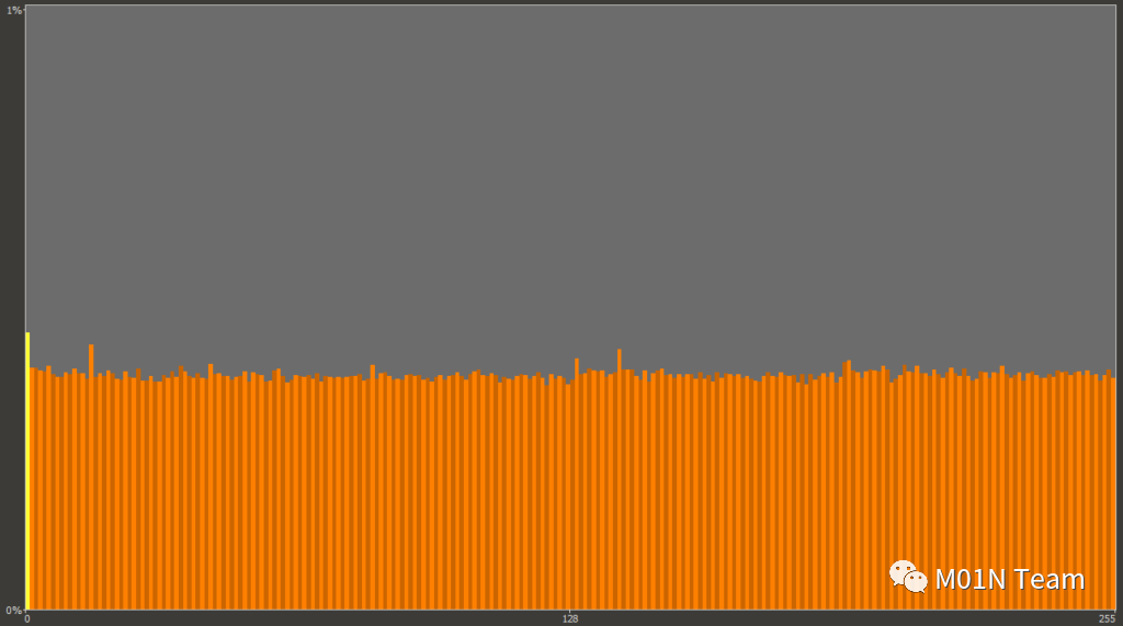 共享内存内字节的直方图,每个字节都平均分布的,比较“随机”,除了最左边的0字节比其他字节出现次数略高