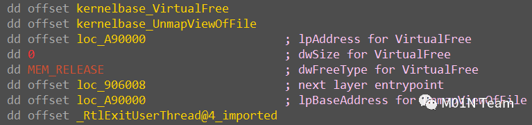由 VirtualFree -> UnmapViewOfFile -> next layer -> RtlExitUserThread组成放入一个简单ROP链