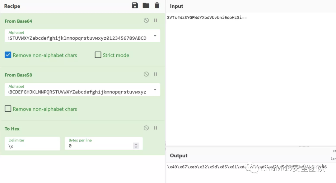 检测逻辑位于so文件中,字符串有加密,通过交叉引用找到解密解密代码。位于init_array 输入之后进行base58,最后进行变表base64和eRRqdUxQWENUbWVmbTZtZlg4bmFxQg比较 但是解出来不对,怀疑JNI_OnLoad肯定有问题,于是找到动态注册 动态注册的函数只有比对数据不同,并且多了一个函数的转换,后两步相同 所以先完成后两步逆向