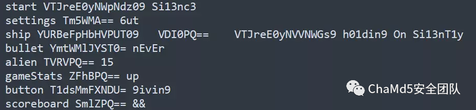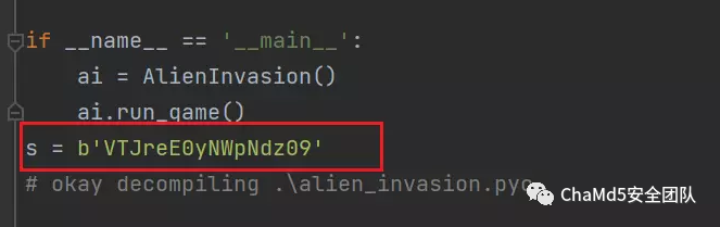 解包并反编译pyc可以在alien_invasion类中看见部分flag