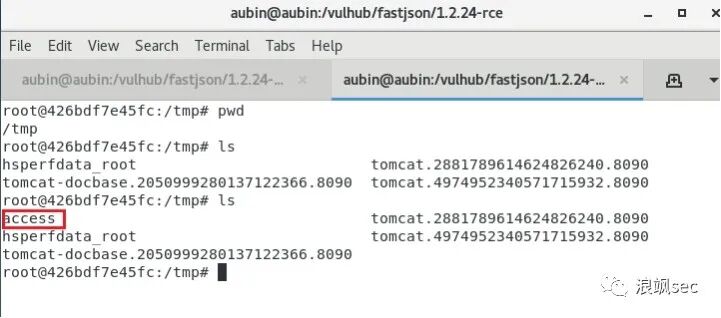进入后台查看命令是否执行成功,命令成功执行,创建/tmp/access文件