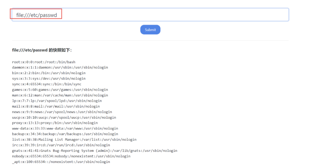 file:///etc/passwd            # 读取配置文件