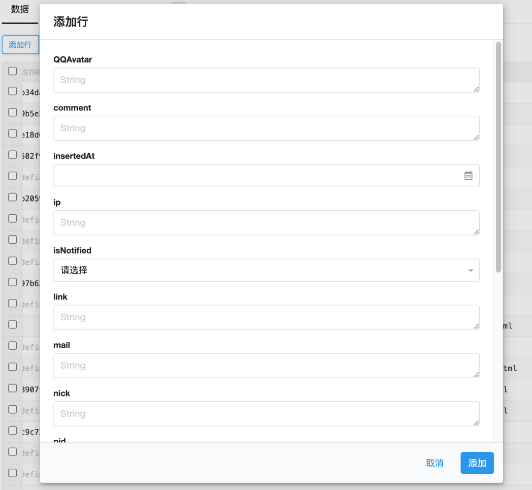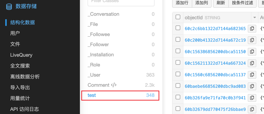 LeanCloud 支持一个个手动添加行,类似于这样的效果: