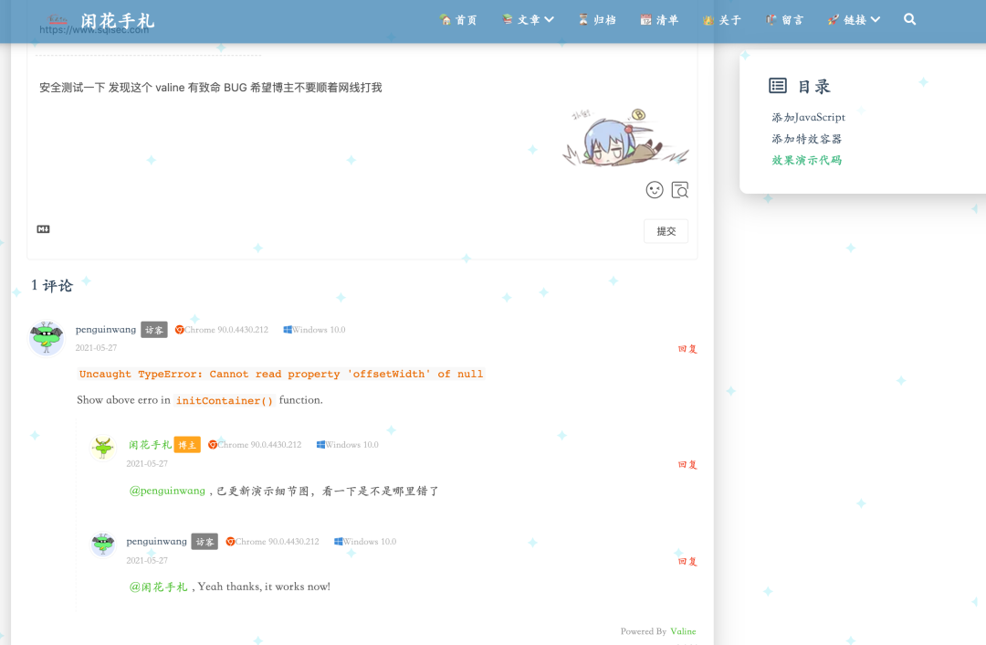 因为博客最近改版,Valine 也换的最新版本,可能是哪个评论和这个 Valine 冲突了,所以下面来尝试找出罪魁祸首并恢复原文评论。