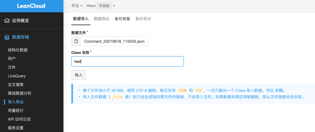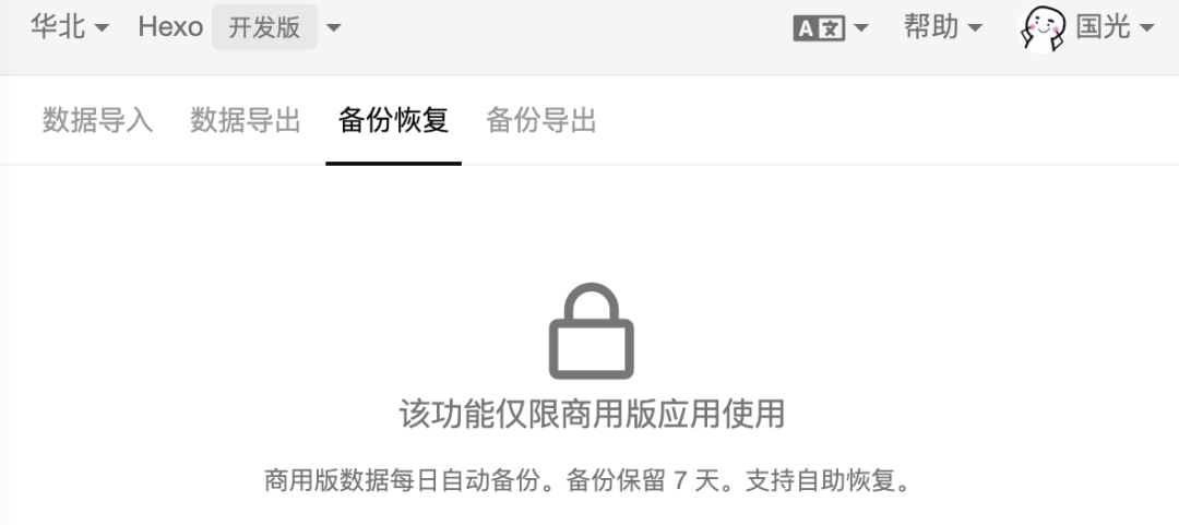 LeanCloud 自带的评论恢复功能基本上是不能使用的,首先「备份恢复」功能只有商用版本可用: