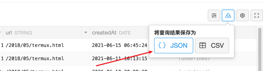 然后将筛选后的结果导出为 JSON 格式的文: