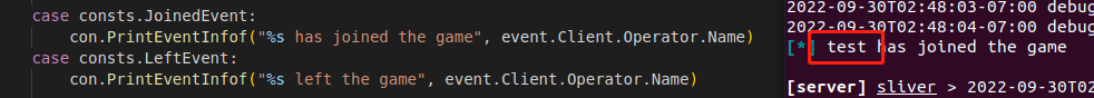 处理该event后,server显示登录信息,连接正常后client也进入console模式;