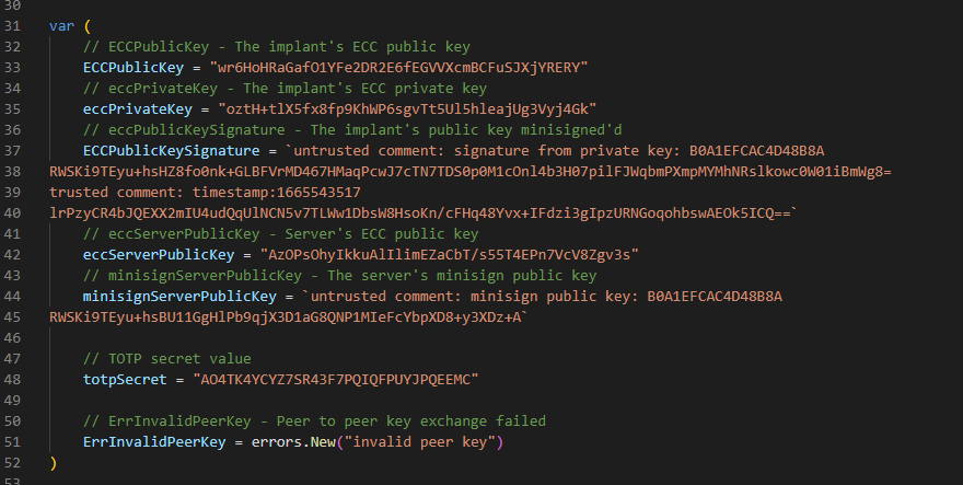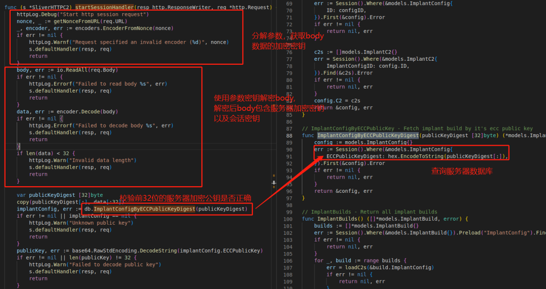 而当前版本的Sliver不仅是文件类型及参数分割方式进行了更改,此外更增加了密钥校验功能,确保无法进行相关公钥的获取,如下图所示: