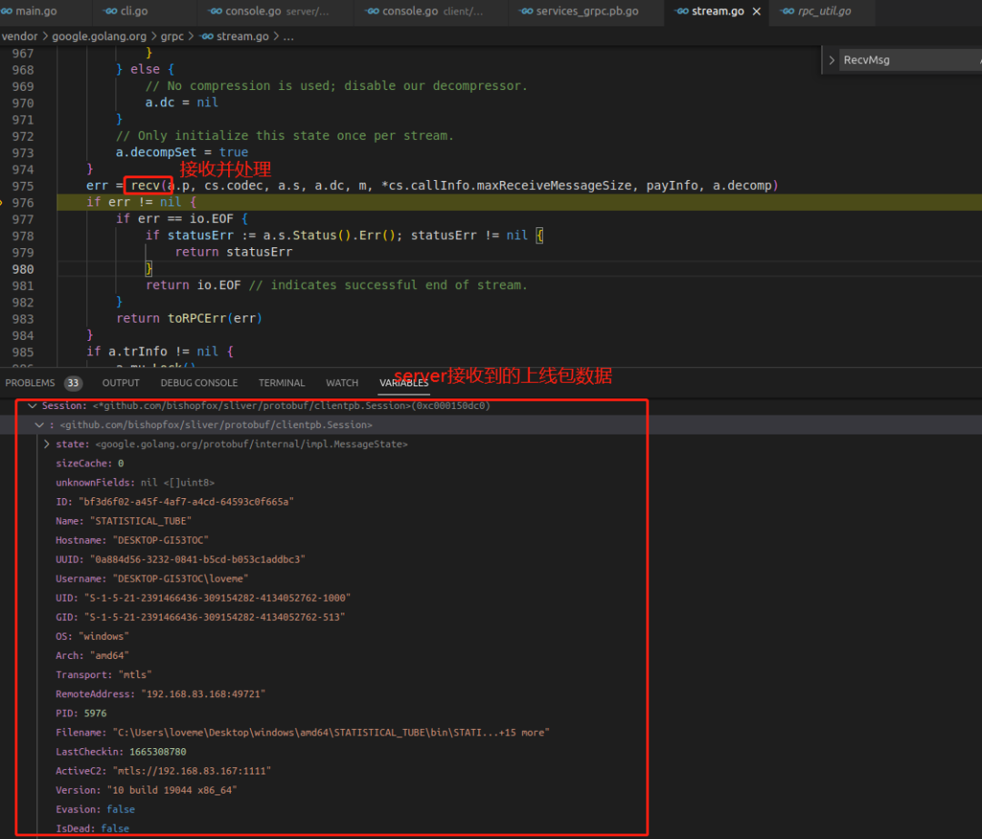 原理:使用delve远程调试sliver-go-v1.18.5源码。