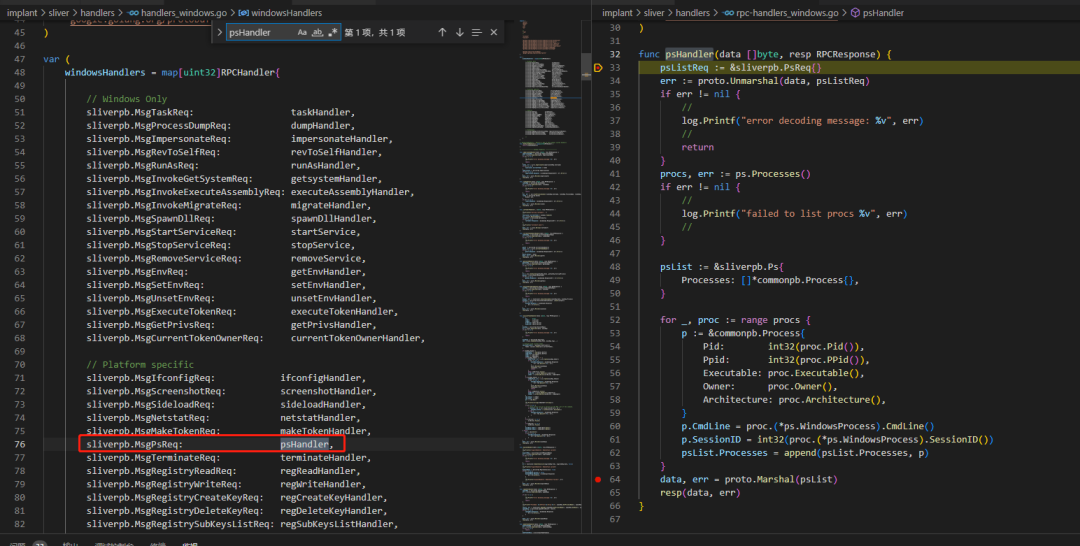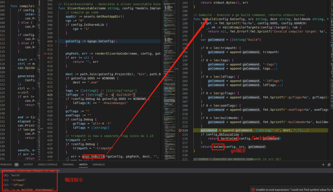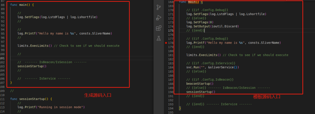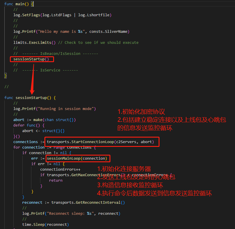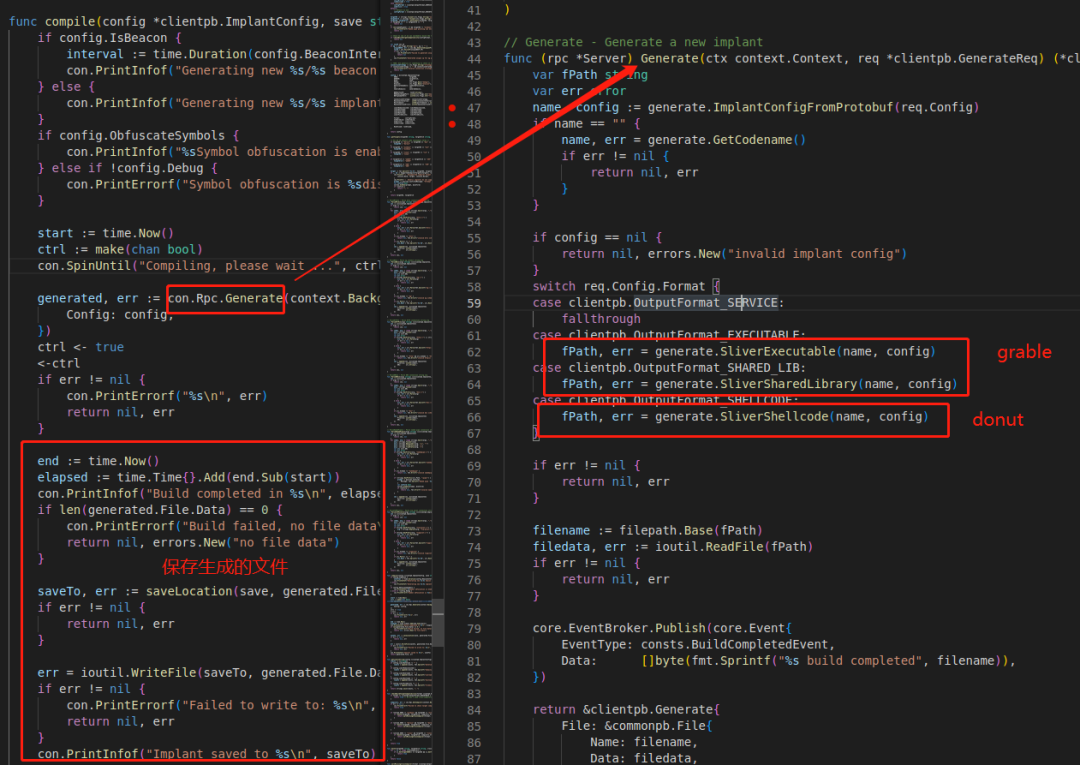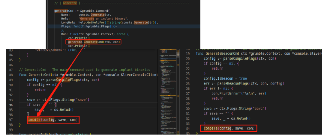 编译命令实质为编译implant/sliver文件夹所有文件打包生成指定的格式,所以也可直接对Implant/sliver源码进行分析。