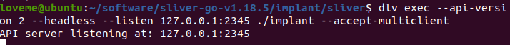 dlv exec --api-version 2 --headless --listen 127.0.0.1:2345 --accept-multiclient ./implant
