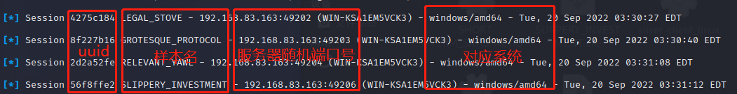 使用use指令观察被控机上线情况,发现存在上线的session或者beacon。