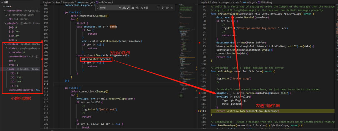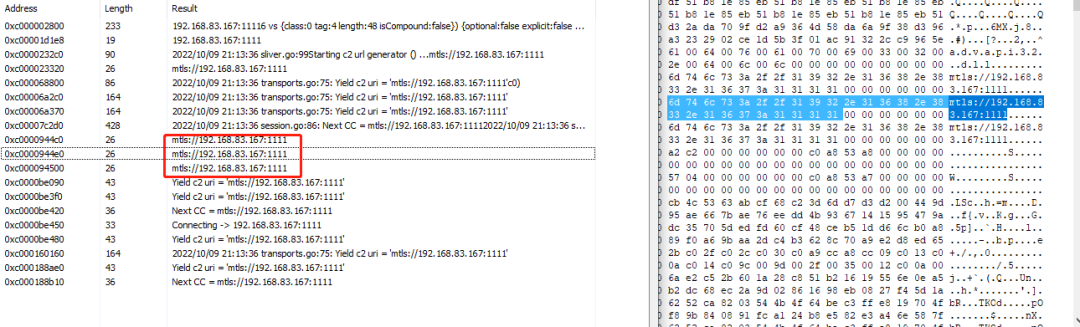 通过分析源码发现Implant中使用的相关配置文件在Implant进程运行中未使用任何加密方式,只使用了相关协议进行加密。如上文中的mtls通信中内存就存在许多的内存痕迹。
