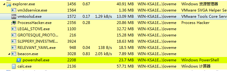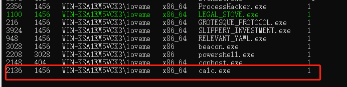 执行migrate命令进行转移,可以看到calc.exe产生了流量,但进程树没有发生变化,起到了很好的隐藏效果。