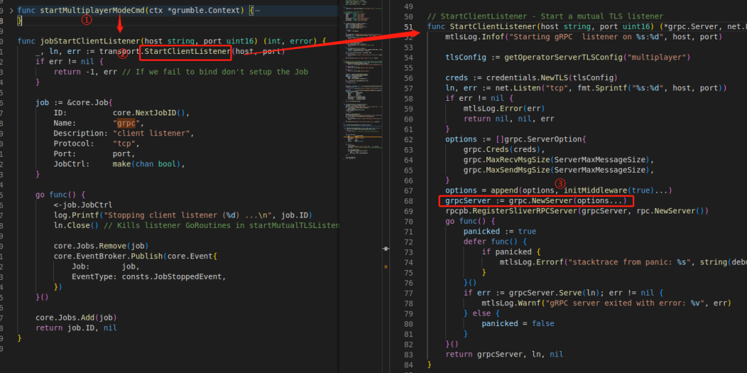 可以发现,Sliver同CobaltStrike一样均采用服务器进行核心控制,转发客户端和被控机的通信消息,稍显不同的是,Sliver的服务器也可直接对被控机进行控制。