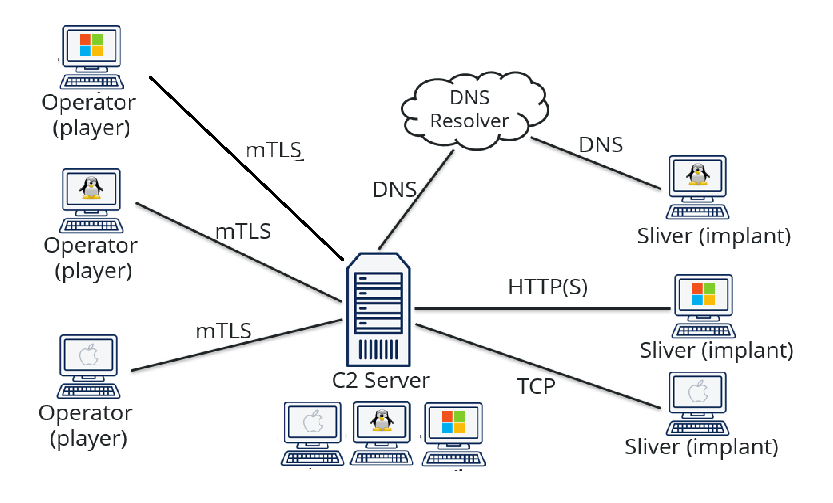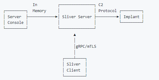 Sliver是作为跨平台植入和协作使用的目的设计而成,根据其官方所述,Sliver的原理控制图如下图所示(笔者略有增加)。