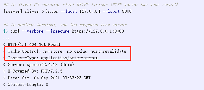 此外历史版本下Sliver的证书特征如下图所示,通过伪造PHP 的 Apache服务器,访问对应的url可以直接获取到该head特征: